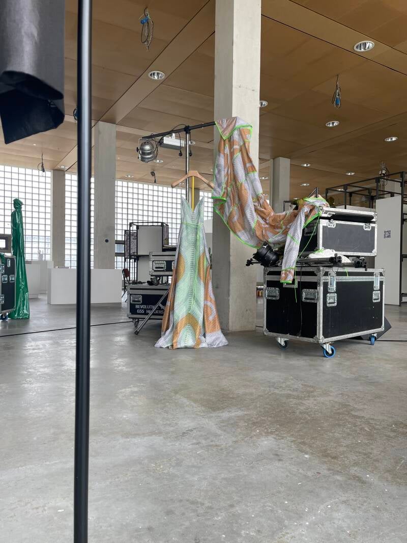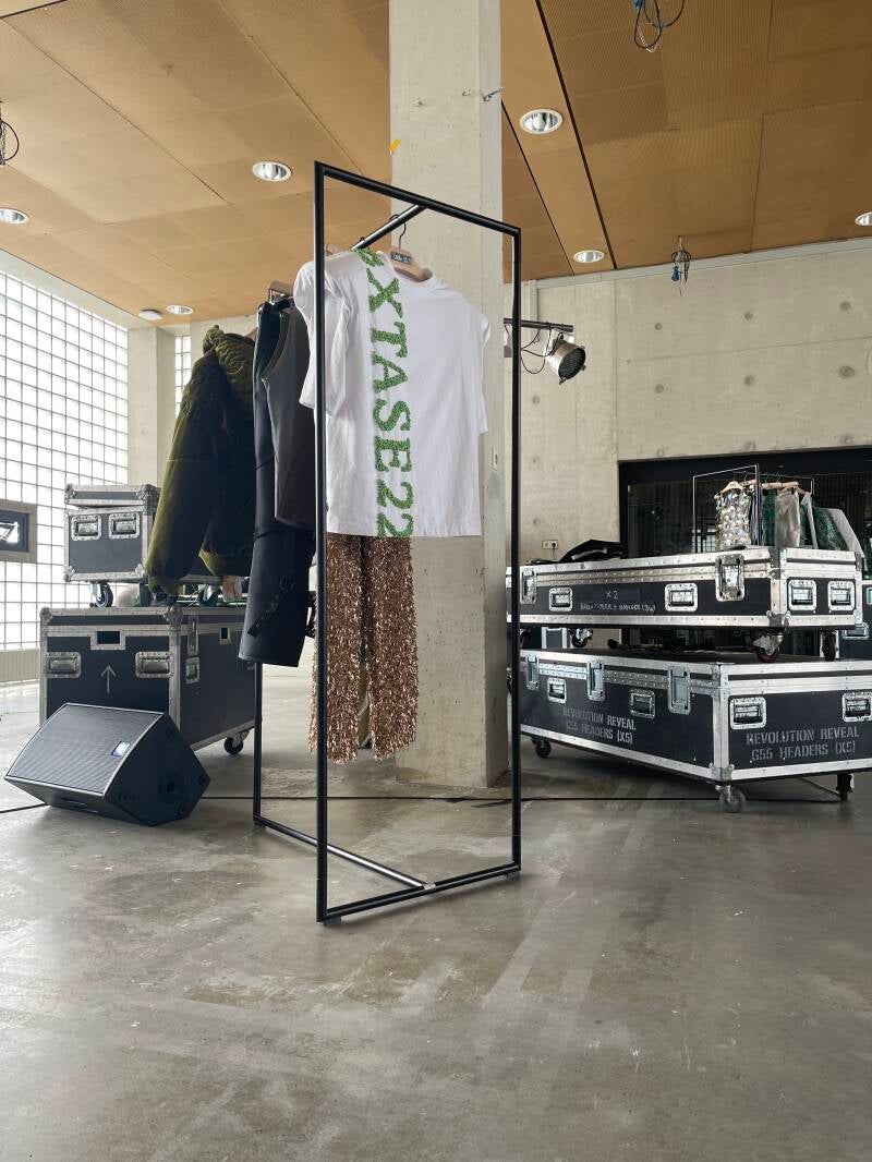 EXTASE22 concluded at the Maastricht Institute of Arts with a graduation exhibition, where the work became an immersive journey into the world of festival and fashion alike. Visitors moved through a space alive with energy. Large flight cases, speakers, and lighting installations recreated the pulse of backstage moments and the tension of a runway line-up.