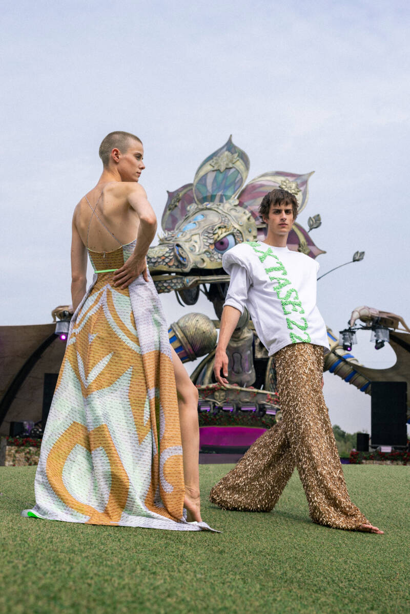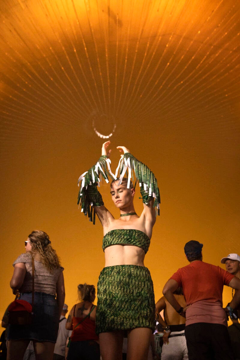Here, on the festival’s soil, the creations came alive once more, infused with the energy and freedom of the crowd, the lights, and the music that first inspired them. The textures, shapes, and colors of the pieces literally danced with its surroundings.
